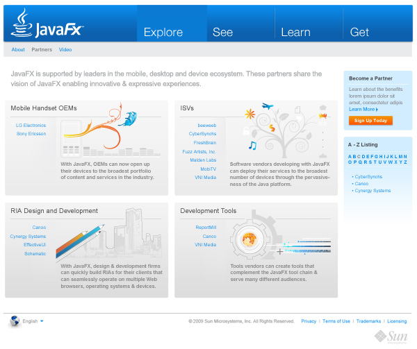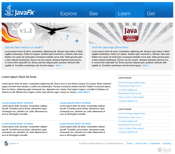 Development of standards and key brand elements as part of the redesign of the JavaFX website.